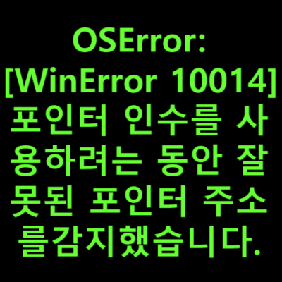 주피터 노트북을 vscode에서 사용할 때 간혹 OSError: [WinError 10014] 호출에 대한 포인터 인수를 사용하려는 동안 시스템에서 잘못된 포인터 주소를 감지했습니다. 라는 문구가 뜰 때가 있다. 검색을 해보면 window 공식 문서에서 " 시스템에서 호출의 포인터 인수를 사용하려고 할 때 잘못된 포인터 주소를 검색했습니다. 이 오류는 애플리케이션이 잘못된 포인터 값을 전달하거나 버퍼 길이가 너무 작은 경우에 발생합니다. instance 경우 sockaddr 구조체인 인수의 길이가 sizeof(sockaddr)보다 작습니다." 라고 나온다.